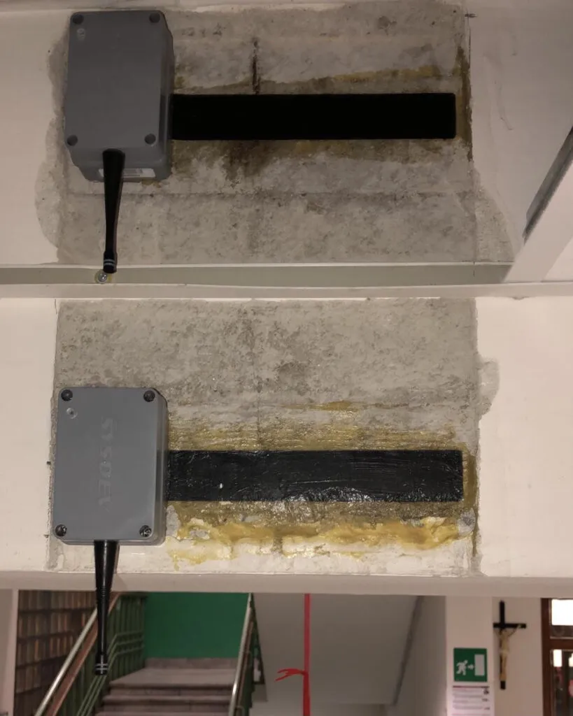 The installation of the SHBox system, patented by Sysdev, involved placing around twenty multi-sensor nodes at strategic locations throughout the building: from the foundation to the load-bearing walls, with special attention given to the basement where the school cafeteria was located, as well as the two upper floors.
